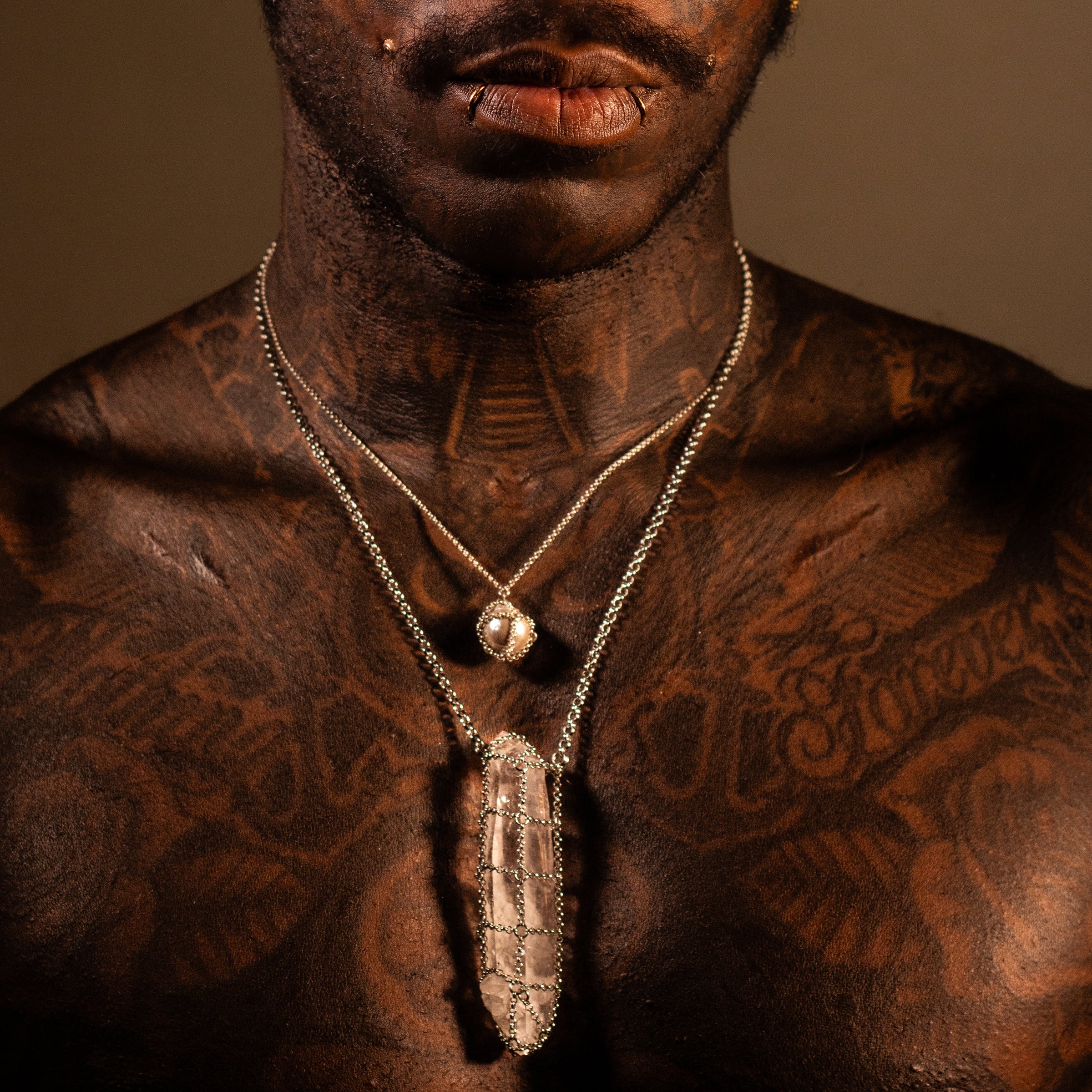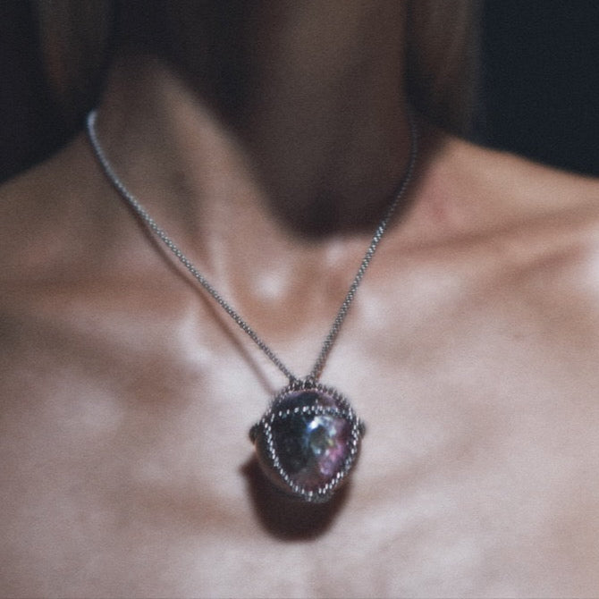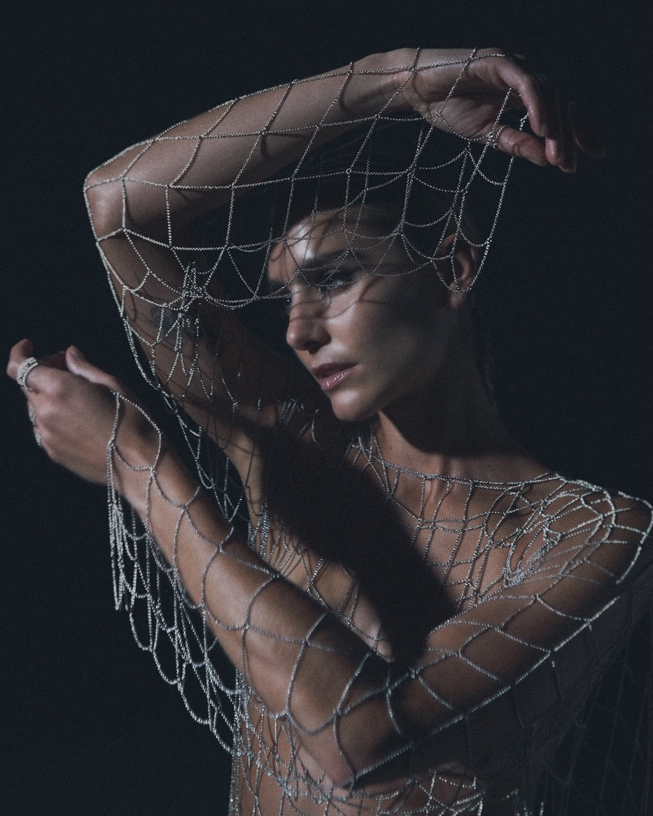 Each piece is built around the natural shape of the gemstone—never forced, never symmetrical by design. The chain responds intuitively, wrapping organically to form a sculptural, architectural shell. Each link works in tension, creating a flexible yet supportive cage that balances force and form, delicacy and strength. The result is a one-of-a-kind design shaped by the stone.