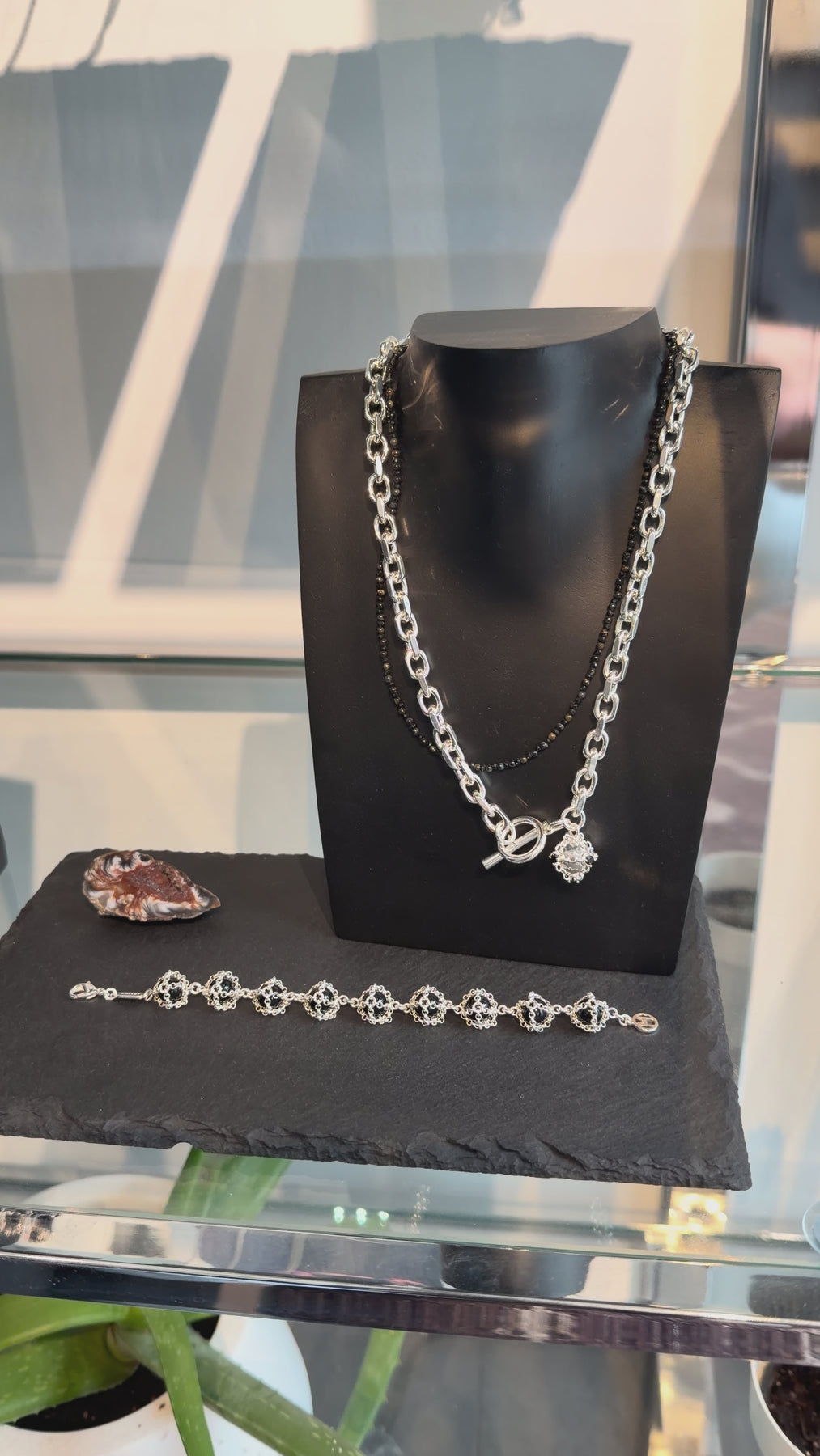 Make a statement with the MHART signature caged onyx gemstone statement bracelet. Onyx is a powerful stone of strength and grounding that encourages focus, discipline, and resilience, while absorbing negative energy to promote stability, protection, and inner confidence.