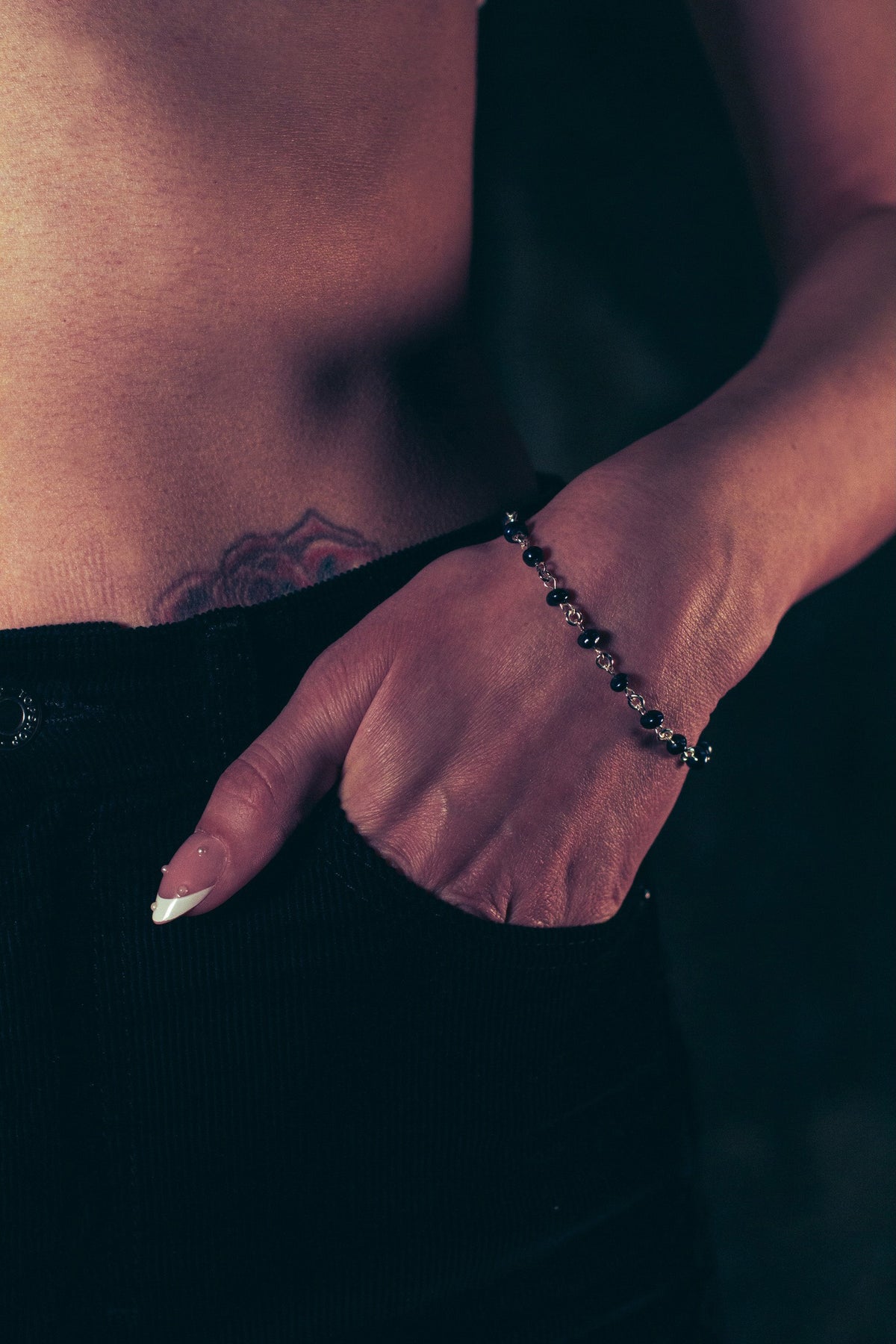 Handcrafted with linked black freshwater pearls and 14k gold-plated brass, this bracelet is perfect for everyday wear—lightweight, versatile, and easy to stack or layer with your favorite pieces. Each pearl is chosen for its rich, lustrous sheen, creating a refined yet modern look.