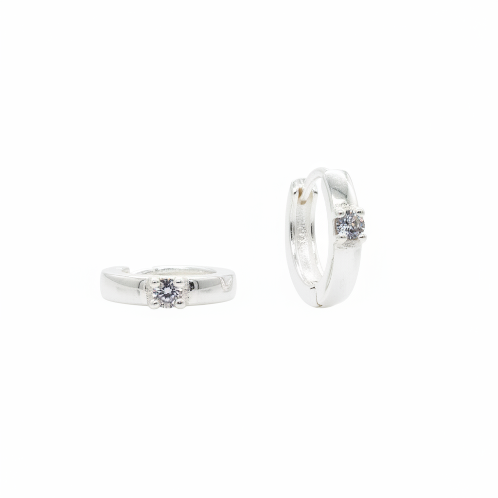 Silver Huggie Hoop Earrings with Single CZ - Correct Size