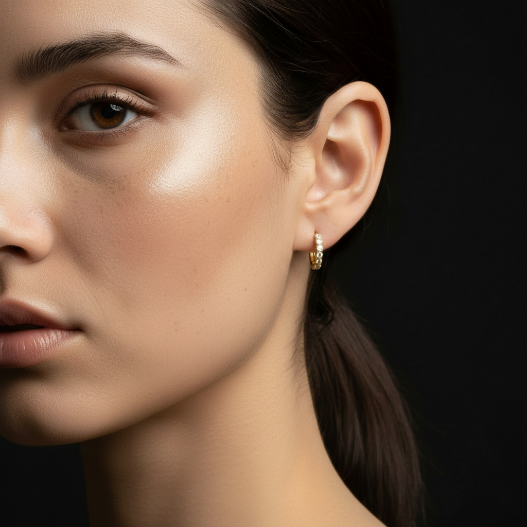 A refined everyday hoop set with precision-cut moissanite stones—engineered in the lab for exceptional brilliance, fire, and ethical sourcing. Each stone delivers diamond-like clarity without the environmental impact.