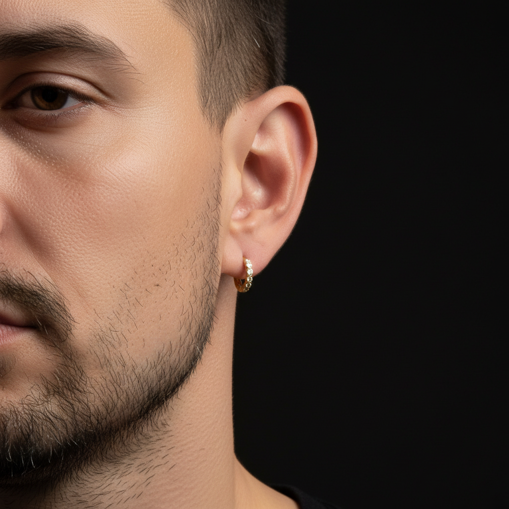 Male Model wearing Tiny Gold Huggie Hoop Earring - No Glasses
