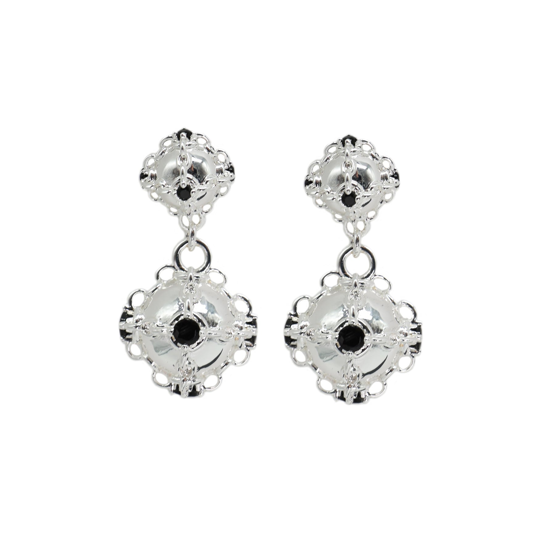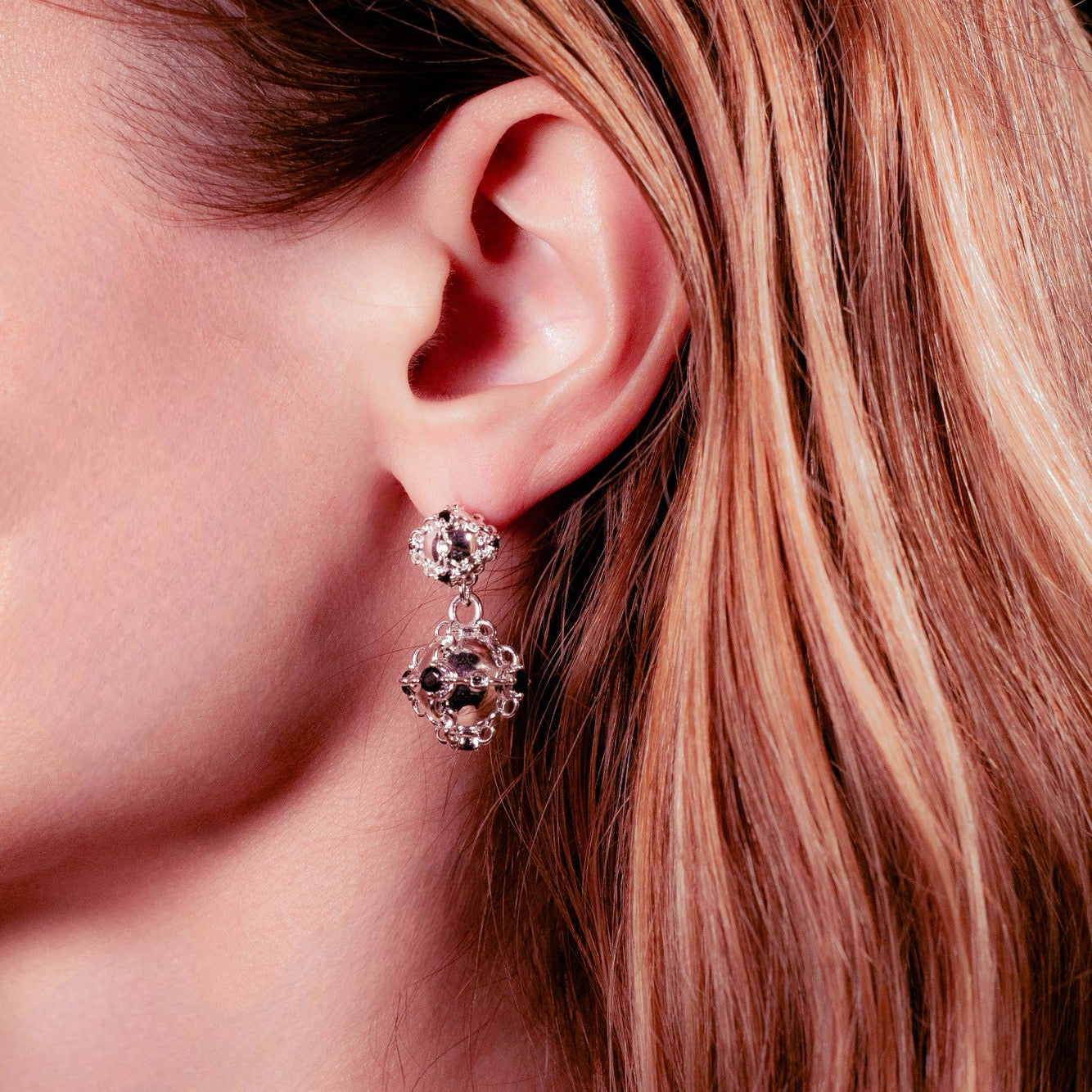 The Double Sphere Earrings feature our signature caged sphere design, meticulously handcrafted from solid brass and plated in sterling silver or 14k gold and adorned with faceted crystals. A perfect balance of craftsmanship and modern sophistication.