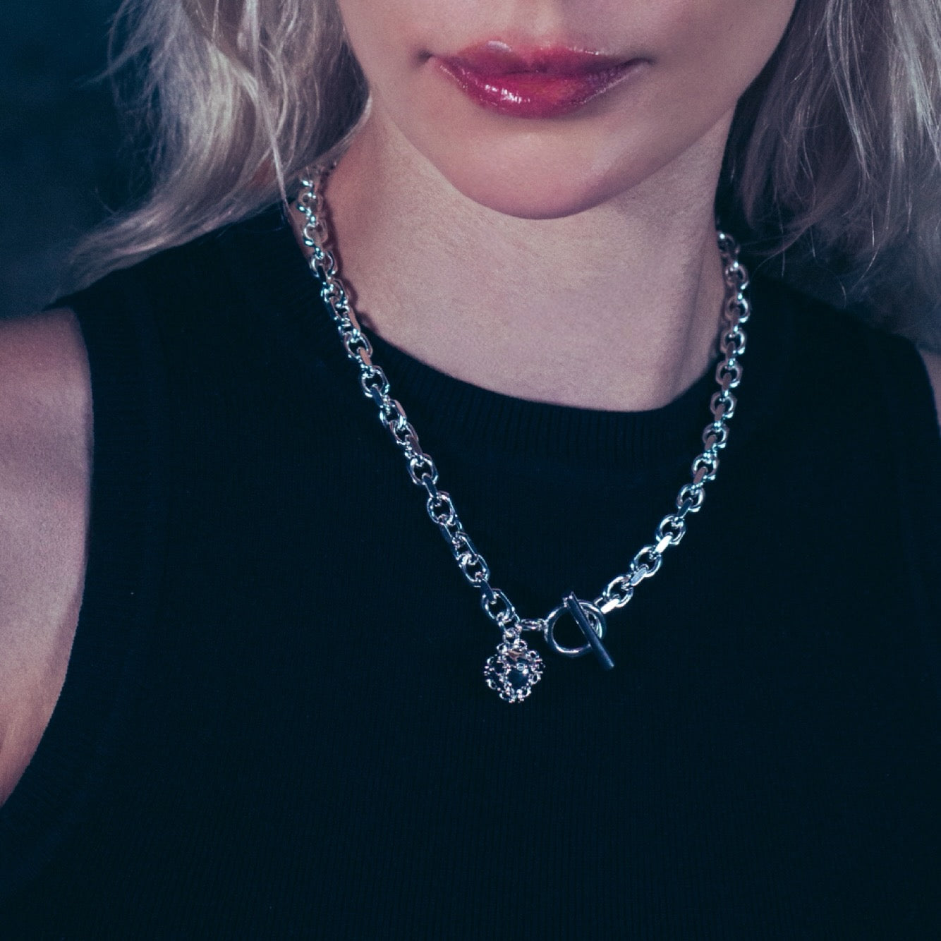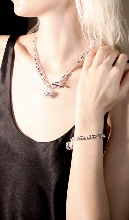 A collection of handmade statement pieces — constructed entirely from linked chain.