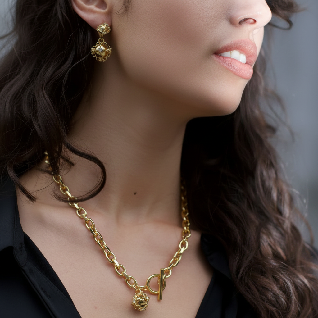Sculpted Caged Sphere Chain Necklace