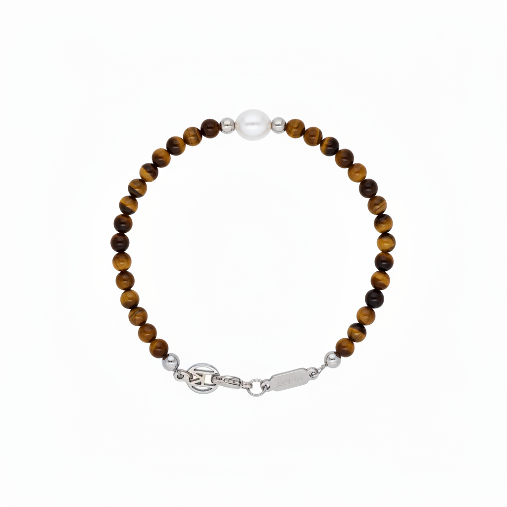 The Tigers Eye Pearl Bracelet merges curated polished tiger's eye gemstones with a single freshwater pearl in a refined composition. Each stone is selected for its natural chatoyant striping and golden-brown luster, delivering visual warmth without compromise. Handcrafted in polished stainless steel with water-resistant properties, this piece balances minimalist design with material quality—a versatile foundation for any outfit.