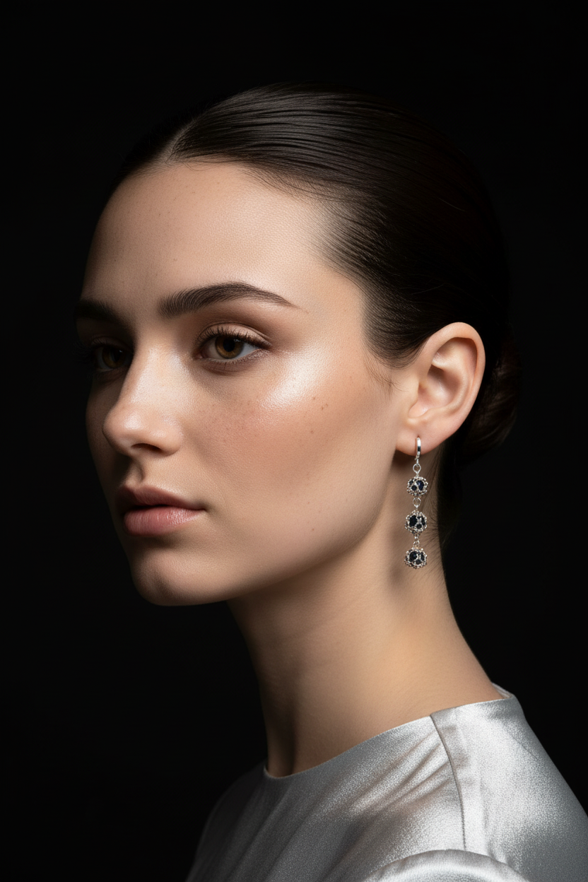 Triple-caged faceted raw sapphire gemstone earrings set in MHART’s signature design. These luminous sapphires symbolize clarity, strength, and quiet power.