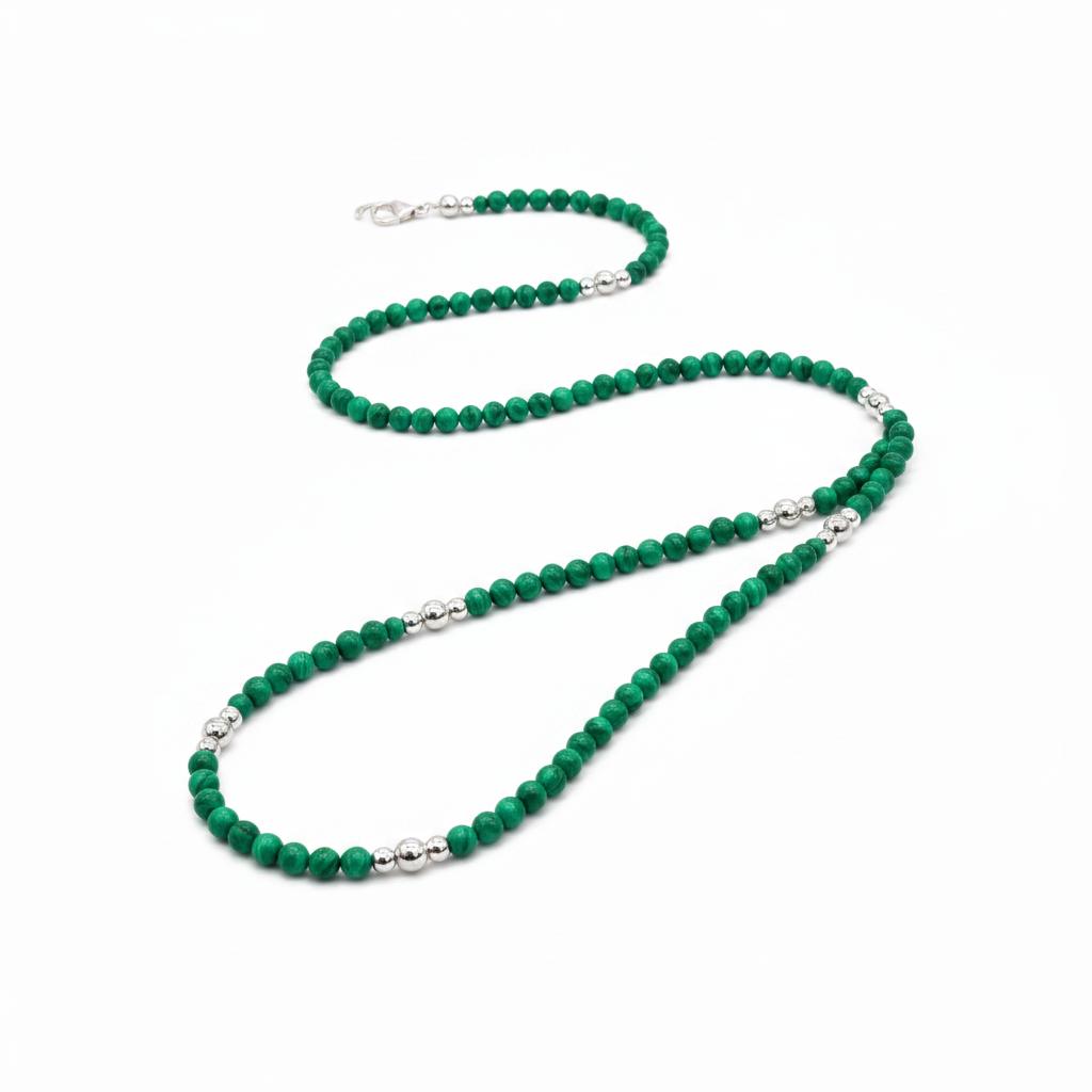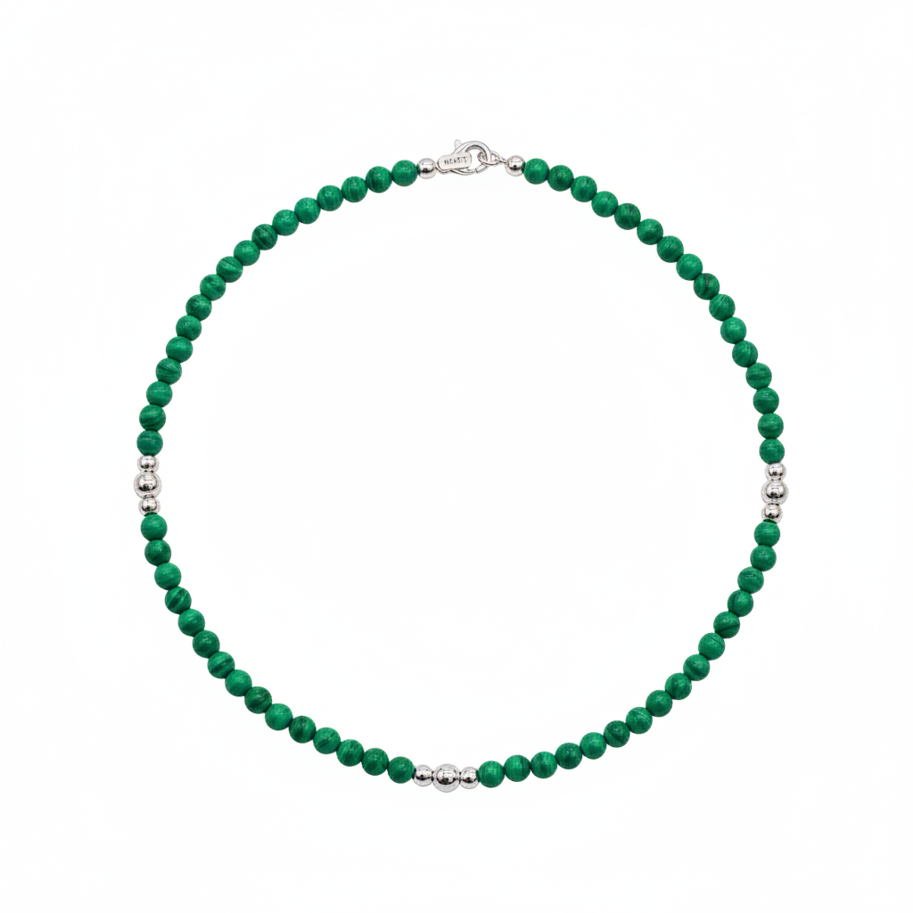 Malachite Necklace 18" – Small 4mm Beads, No Extender
