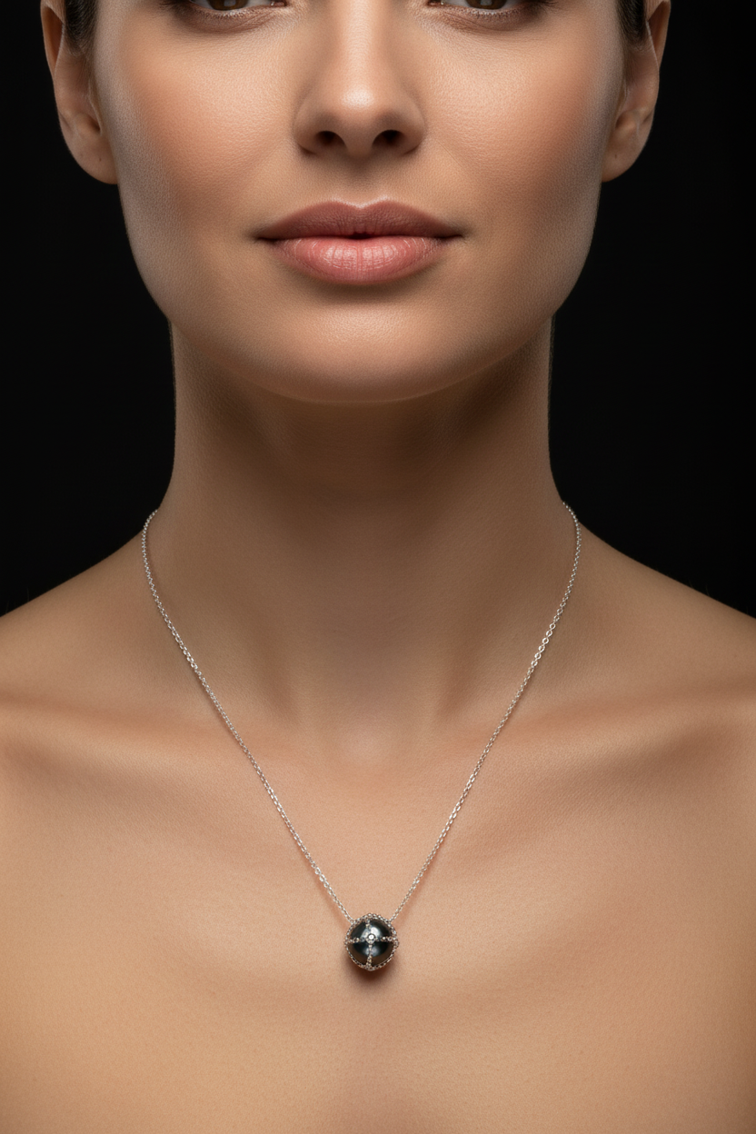 The Caged Black Pearl Pendant is a statement of craftsmanship, this necklace is made of solid 925 sterling silver and a one-of-a-kind pearl.