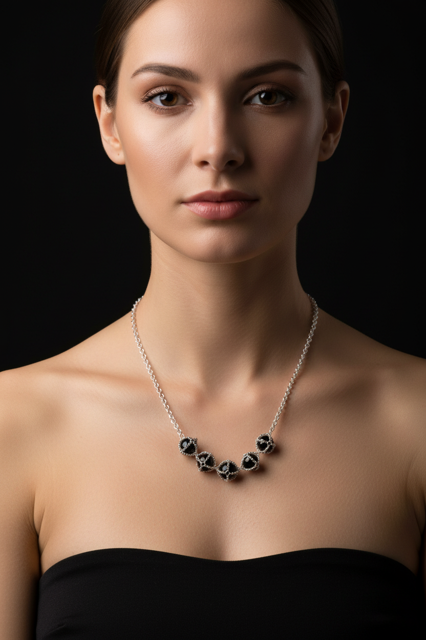 The Multi Caged Onyx Necklace is made of solid 925 sterling silver and a one-of-a-kind onyx gemstones.