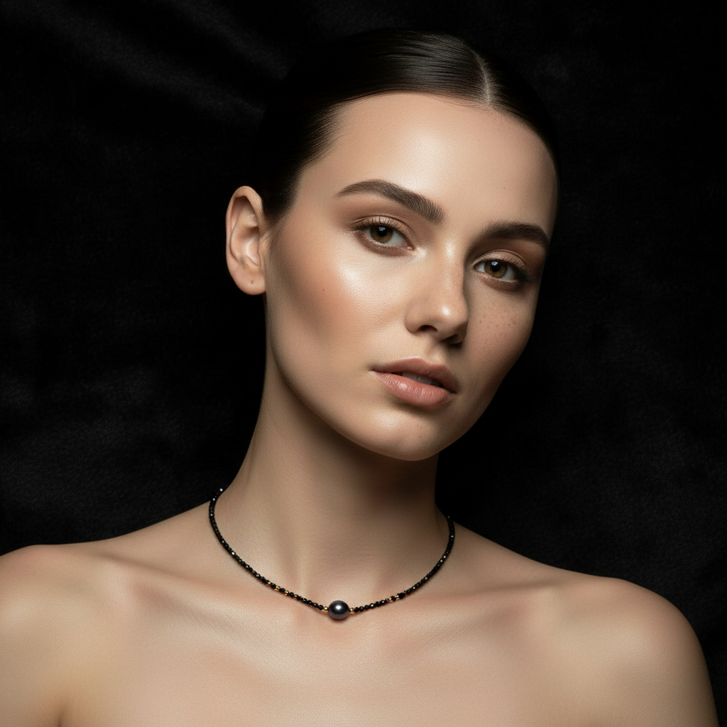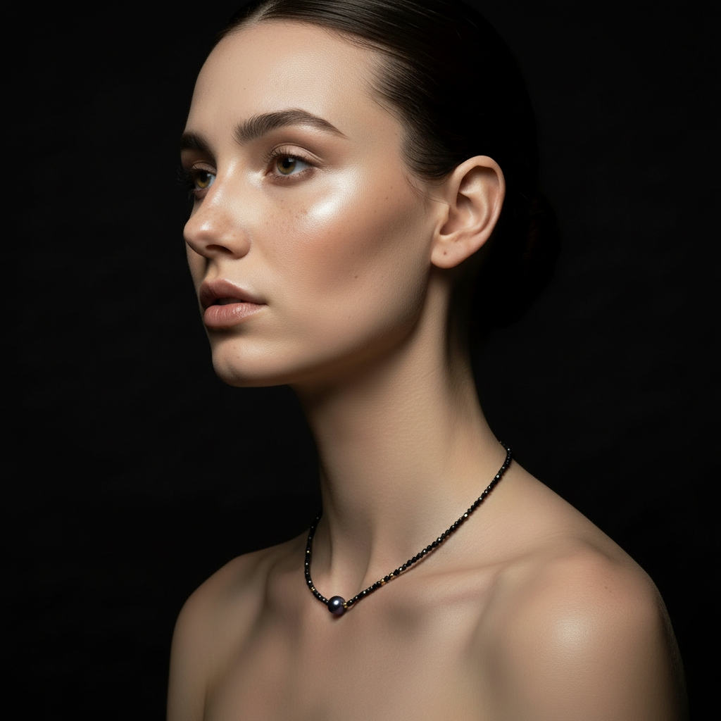 Crafted with purpose, this 18" necklace features a deep-black freshwater pearl paired with a faceted black spinel, a stone known for its grounding, protective qualities. Strung on 14k gold-plated brass, it delivers clean, understated refinement. Each piece is naturally one of a kind.